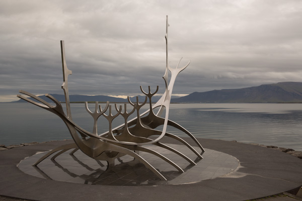 Solfar - diese Skulptur mit Blick auf den Fjord von Reykjavik erinnert an die Wikinger, die im 8. Jahrhundert Island entdeckten