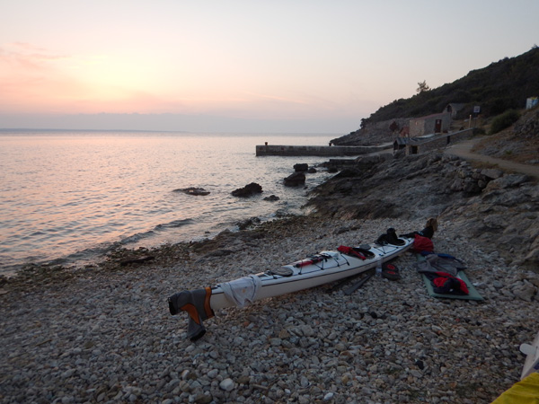 Kroatien, August 2015 - Losinj. Kurz nach Sonnenuntergang endlich einen Schlafplatz gefunden, wo ich alleine anlanden konnte, tja, sogar mit Dusche