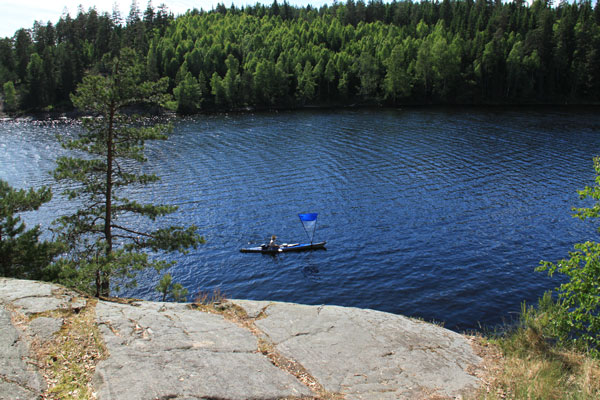 Falt-Seekajak "Ladoga" mit PacificAction-Segel (1,5 m²) im auf einem der vielen Seen in Dalsland/Värmland.